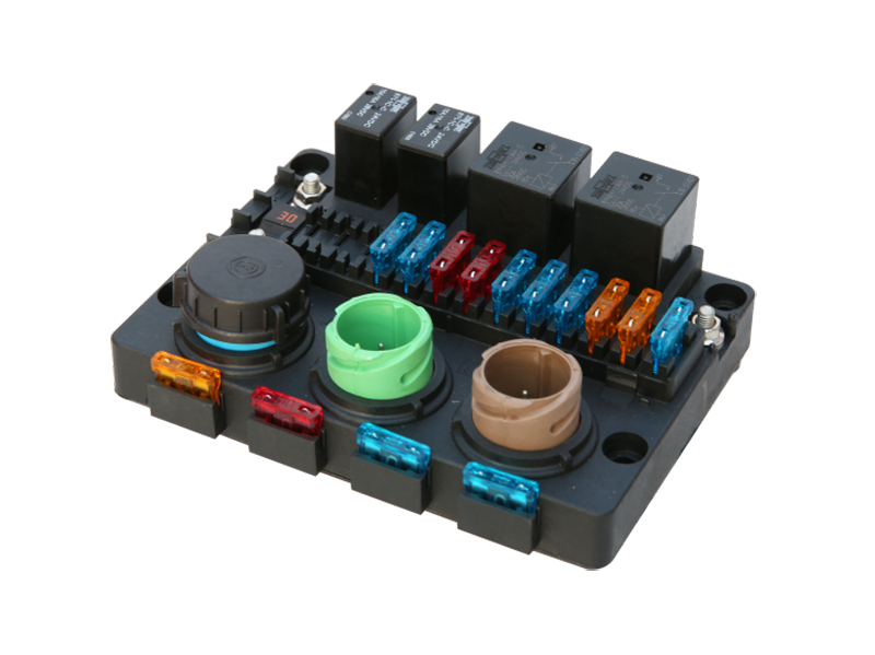該控制盒集成了1路螺栓固定的大功率保險(xiǎn)和13路插式小功率保險(xiǎn)及4只標(biāo)準(zhǔn)繼電器位。